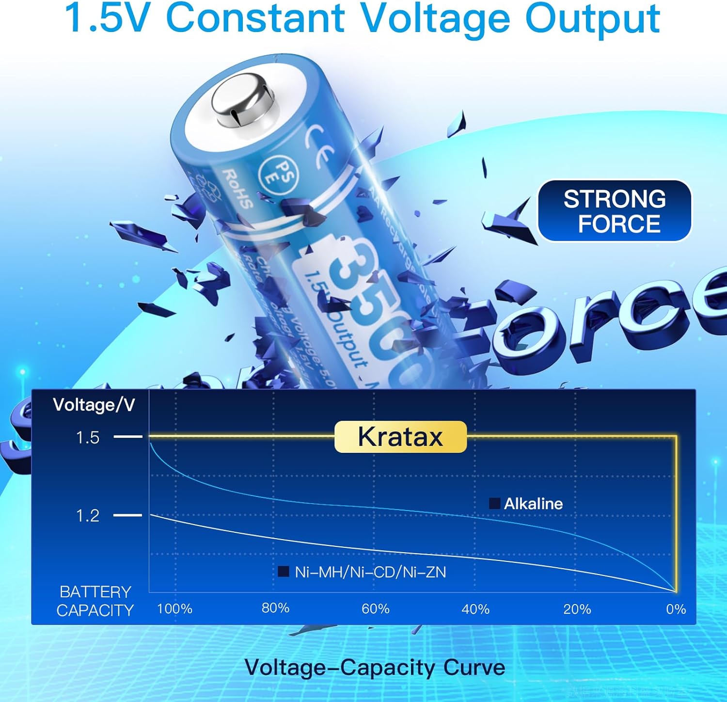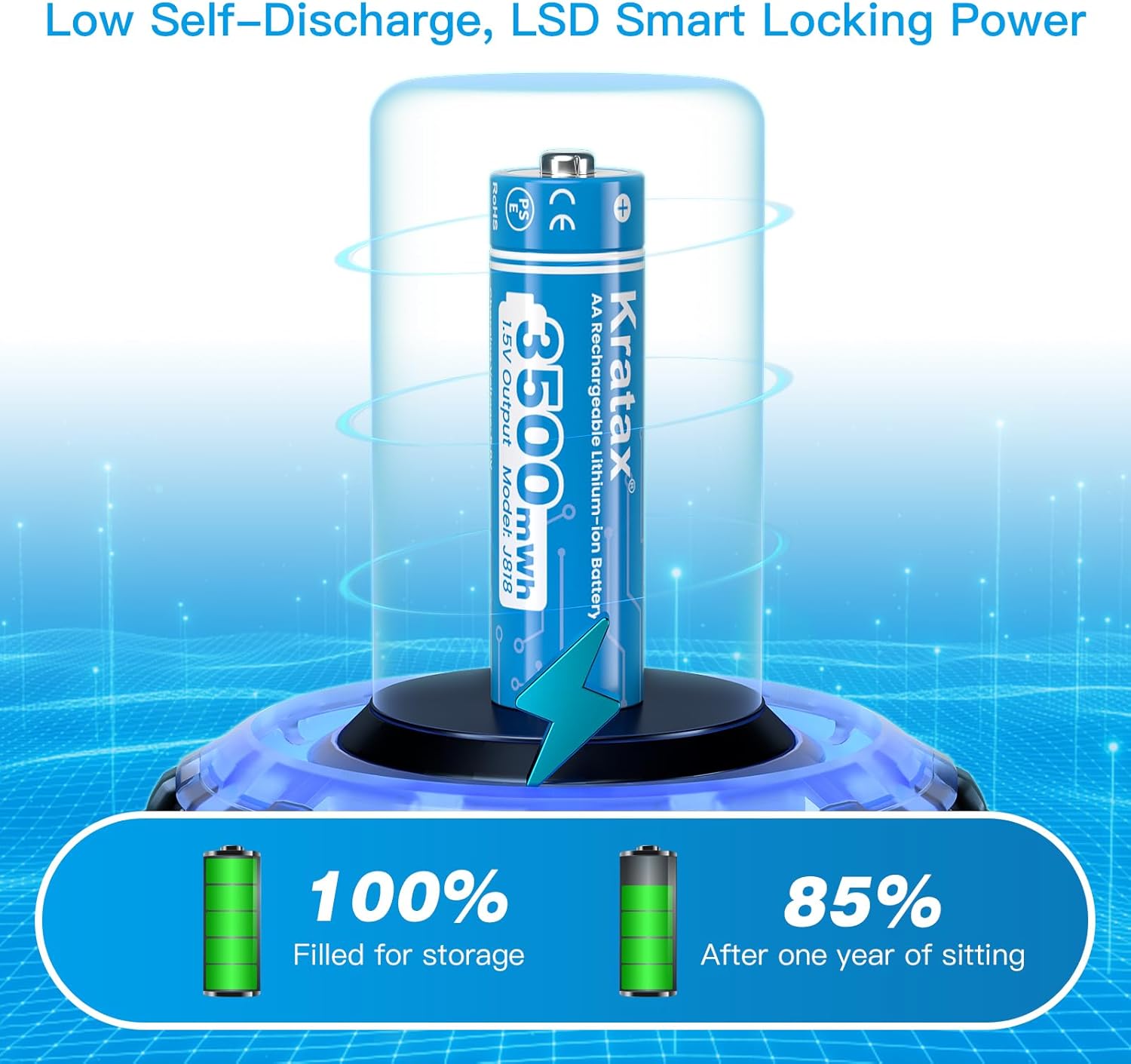 - 【High Capacity & Long-Lasting Performance】With a powerful 3500mWh capacity, Kratax 1.5V AA rechargeable lithium batteries provide extended usage time, making them ideal for high-drain devices like blink cameras, gaming controllers, and toys.
