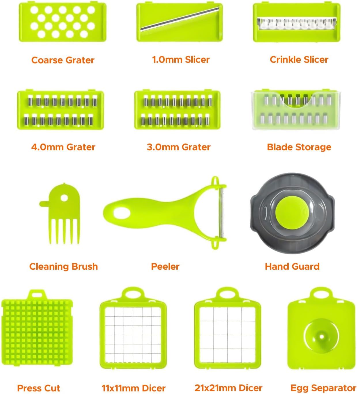 - Time Saver: Your child and home need more time by you: This 14 in one chopper vegetable cutter and vegetable slicer can save more than half of your time that you spend on chopping, dicing, or slicing tomatoes, potatoes, onions, garlic, and other types of vegetables