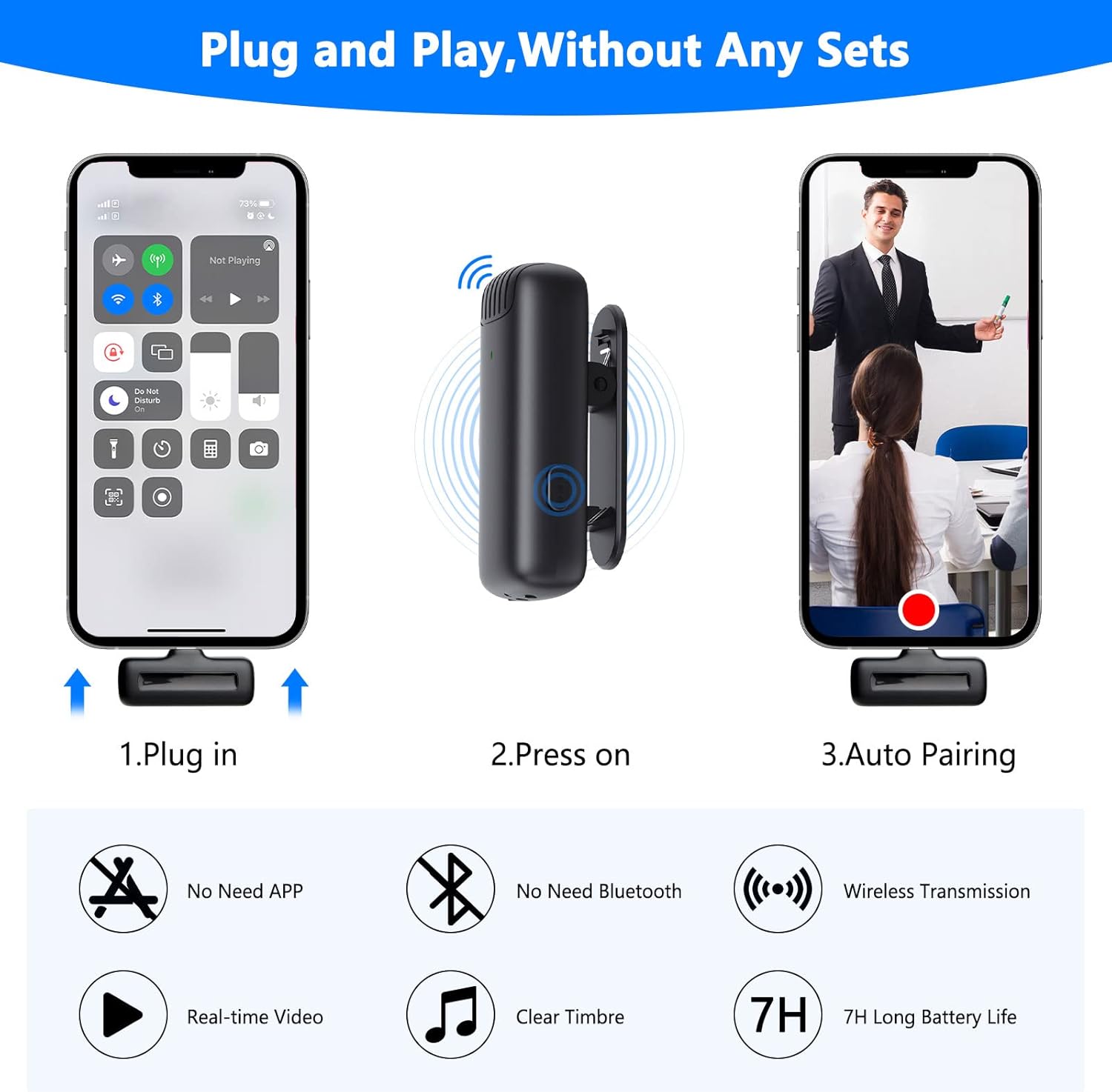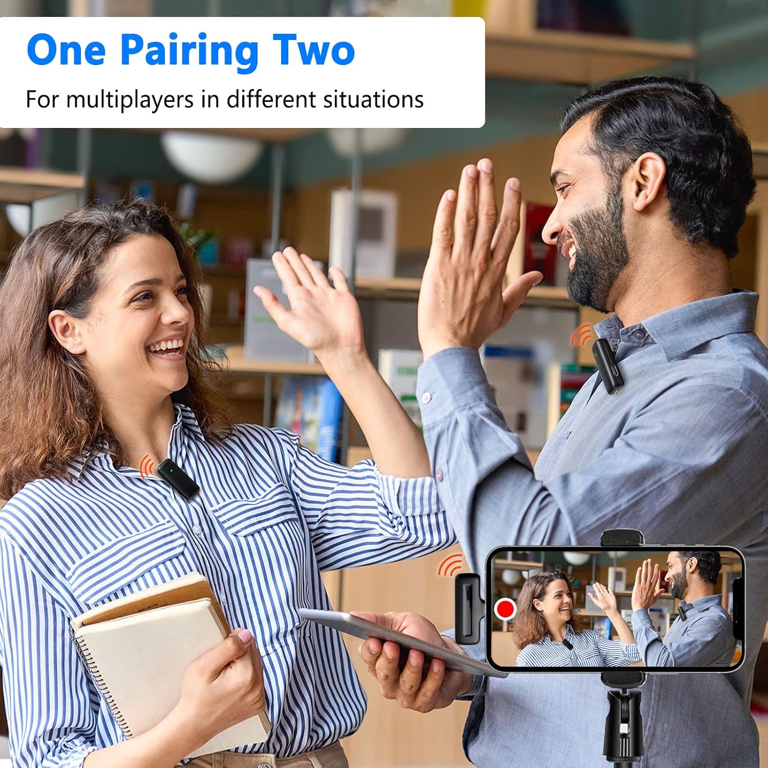 2 Pack Wireless Lavalier Microphone for iPhone iPad with Charging Case, 7H Professional Lapel Microphone Cordless Mini Mic,Clip on Microphone for Video Recording,Interview Podcast Vlog YouTube
