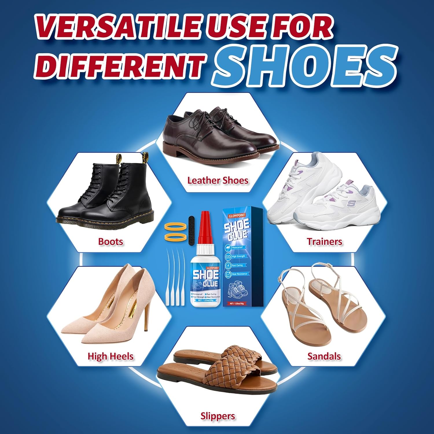 - Superior Bonding Strength & Instant: GLOWPOINT shoe glue offers exceptional adhesion, forming a strong and durable bond in seconds. Its professional-grade formula is perfect for repairing worn-out soles, damaged heels, and split seams, ensuring your shoes look and feel as good as new