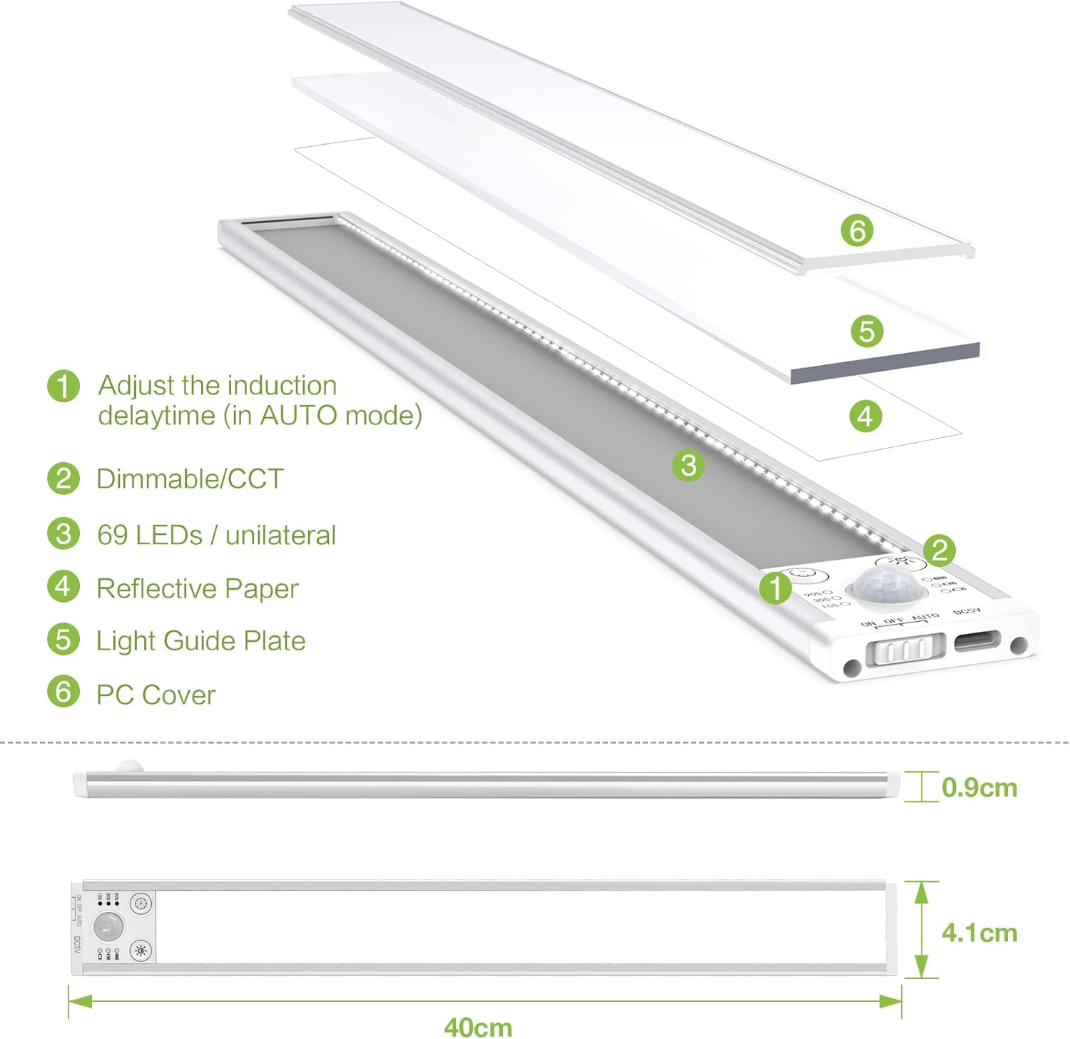 - 🔆3 COLOR TEMPERATURE ADJUSTMENT AND DIMMABLE - Click the button to adjust the color temperature, there are warm white, natural white and cool white (3000K/4000K/5000K). Long press the button to adjust the brightness: 20%-100%. This led cupboard lights can be suitable for a variety of places, you can choose the color and brightness you want, the operation is very simple.