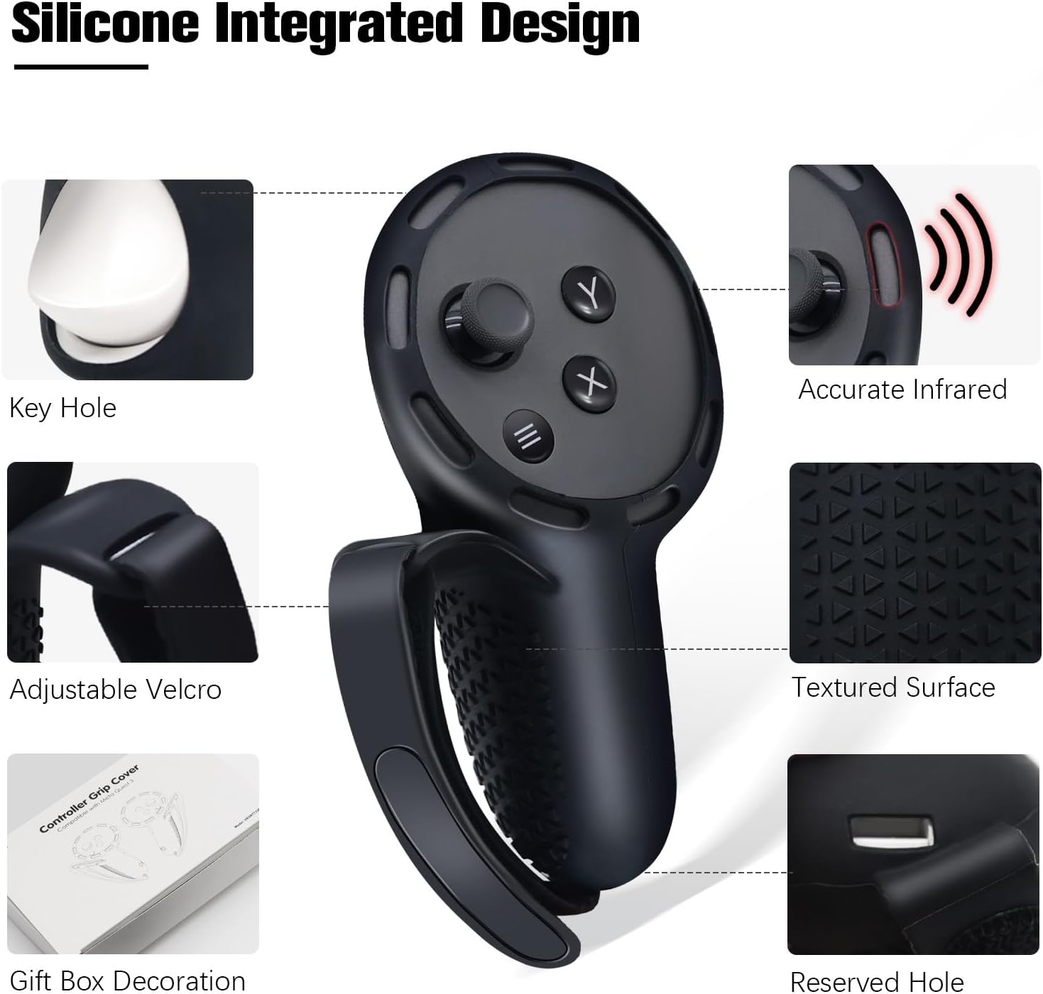 - Anti-slip Texture Design: The grip of Quest 3 controller is uniquely designed with anti-slip texture on the side, which effectively increases the friction and air flow between the palm and the grip