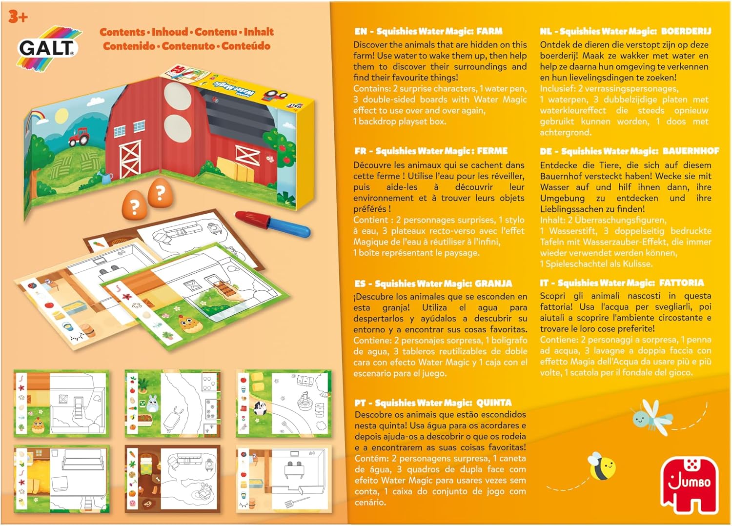 Galt Water Magic Squishies Farm Reusable Colouring Books for Children, Reusable Pictures for Kids to Colour, Magicall