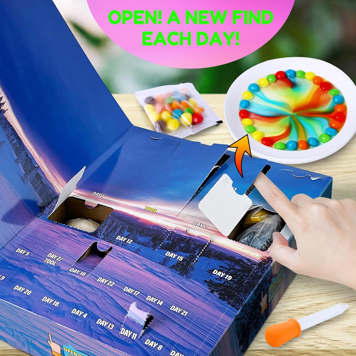 - Daily Science Adventure: Dive into 24 days of science experiments, from erupting volcano to exploring chemistry — designed to inspire future scientists.