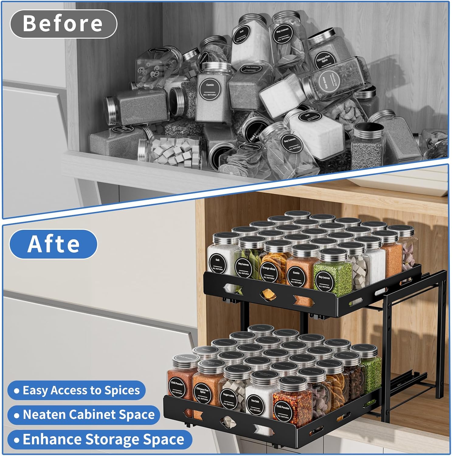 【Durable Metal Material】The spice rack organizer is crafted from high quality iron+aluminum alloy,can support heavy loads, not easy to deform, This spice rack is a reliable choice for your kitchen cabinet and pantry.