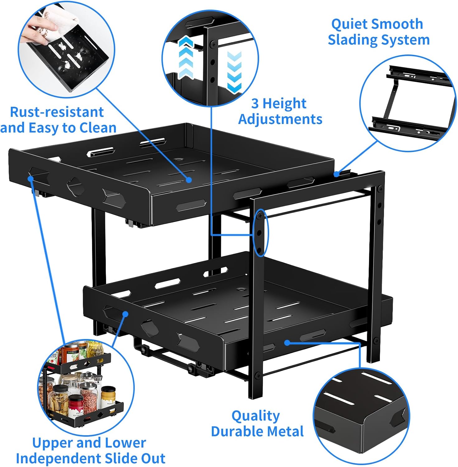 Spice Rack Organizer for Cabinet, Pull Out Spice Rack 2 Tier, Adjustable Height, Heavy Duty Sliding Spice Rack Fits Spices, Sauces, Canned Food, W11.7*D10.8*H9.2 Inch