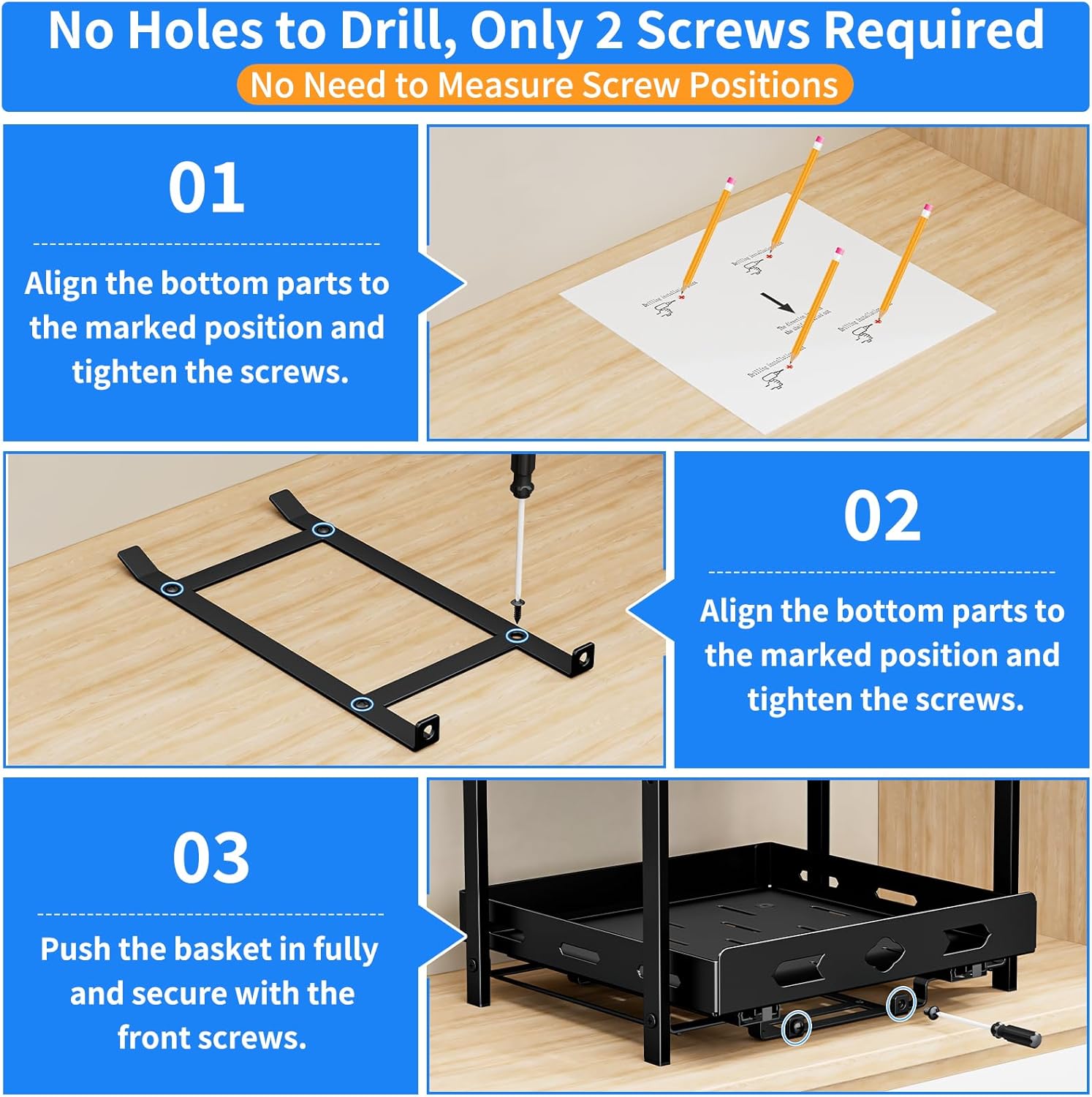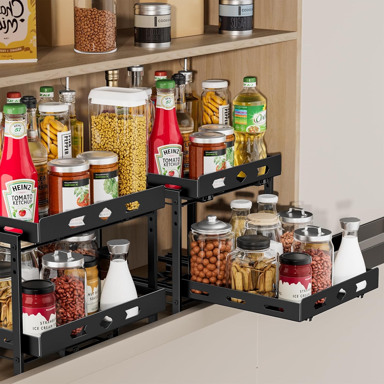 【Smooth Sliding】The slides are designed with a ball bearing system to ensure that the spice racks are smooth and steady during sliding, bending or breaking under the heaviest loads even when fully extended. The upper and lower baskets slide independently of each other, making it easier to find and reach the spices.