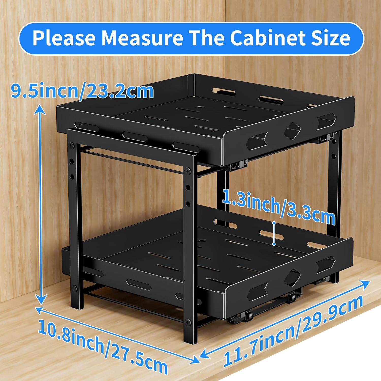 【Measure Cabinet First】This pull out spice rack measure: 11.7in wide x 10.8in deep x 9.2inch high, which can holds spices of all sizes and shapes, Please measure your cabinet first,it requires at least 12in wide x 11in deep x 12in High cabinet space